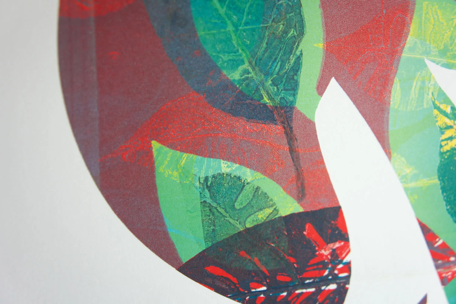 The Anim series of prints are lively and unique. Organic themes mix with relentless shapes across many subjects. Always inspired by anime. This unique monotype print is named "Mecha." Archival paper. (art: H: 24" x W: 17 7/8" / paper: H: 27 3/4" x W: 22 1/8") Signed & dated front (pencil) & back (archival ink). The paper is thick at 300 gsm (grams per square meter).